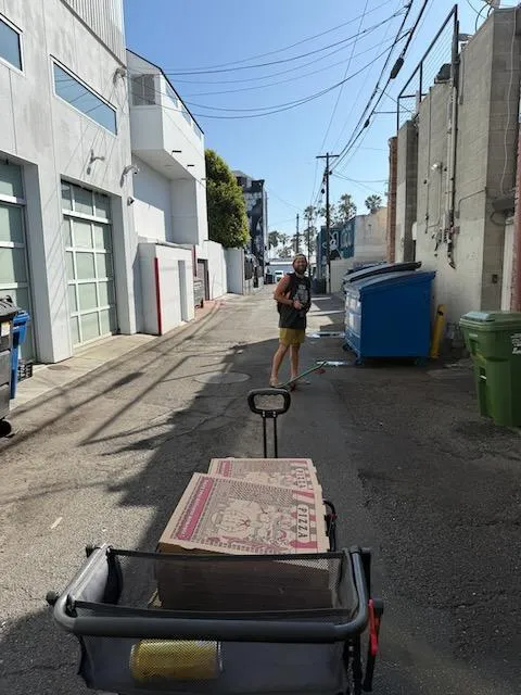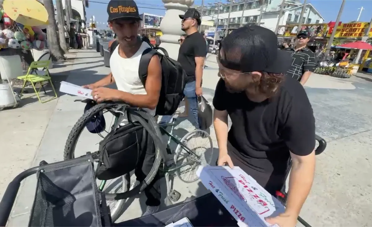 Our Rabbi handing out vegan pizza pies to homeless in Los Angeles, California